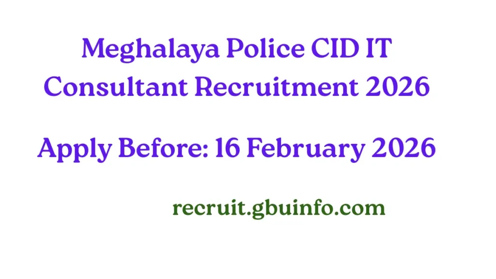 The Office of the Inspector General of Police (CID), Meghalaya has released an official recruitment advertisement dated 15 January 2026 inviting applications from eligible candidates for the post of IT Consultant on a contract basis. Interested and qualified candidates from Meghalaya can apply as per the eligibility criteria mentioned below.