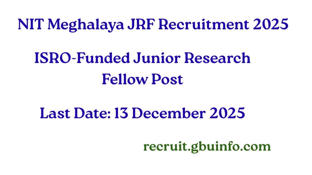 The National Institute of Technology (NIT) Meghalaya has released an official advertisement inviting applications for the post of Junior Research Fellow (JRF) under an ISRO-funded research project.